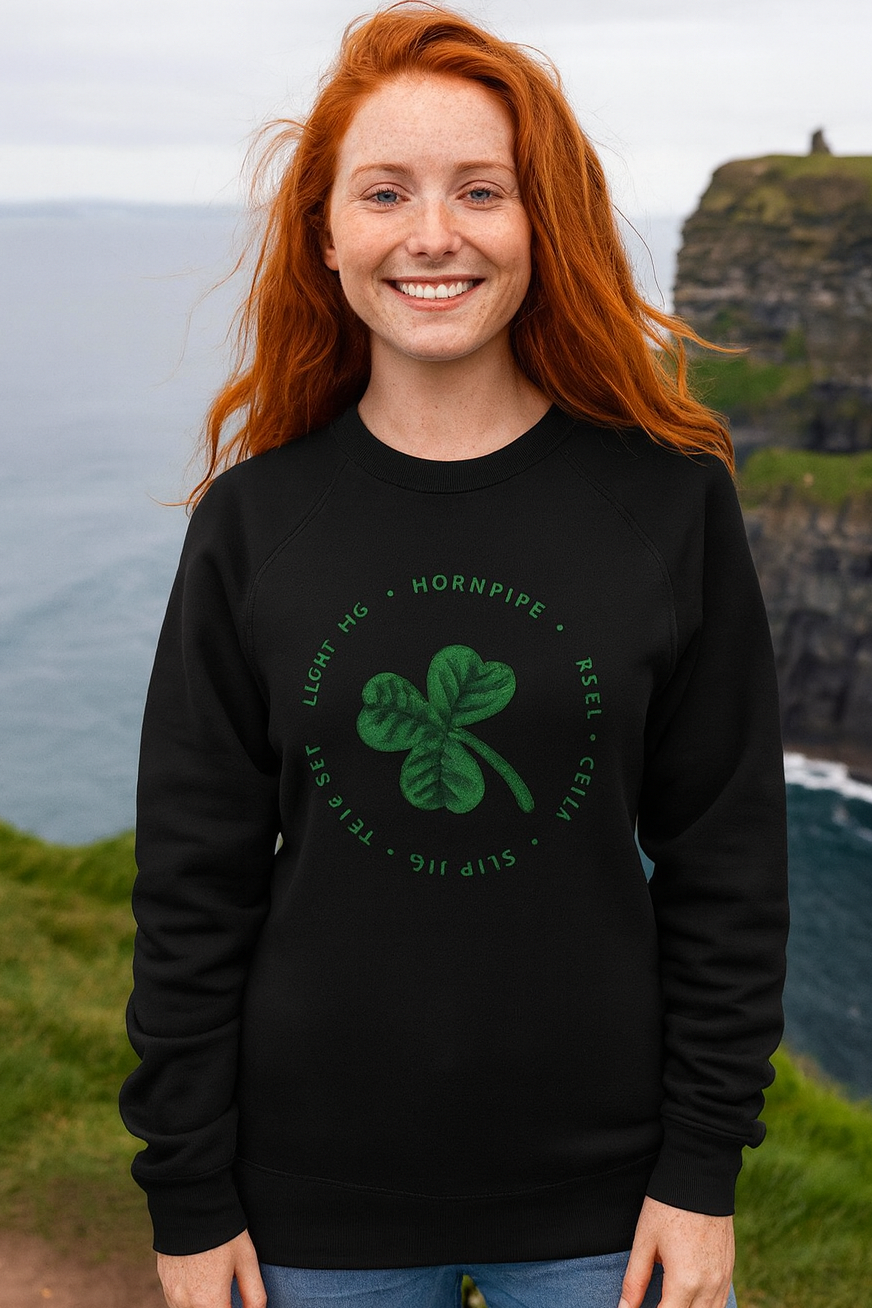 Meet the sweatshirt that started it all — our very first Feisty Fitzy Irish Dance design, and still the one everyone reaches for first. This super-soft raglan crew comes in heathered grey or classic black and features a centered shamrock surrounded by the most beloved Irish dances. It’s a nod to tradition, a hug in fleece form, and a wearable connection to the rhythm that lives in your dancer’s heart.